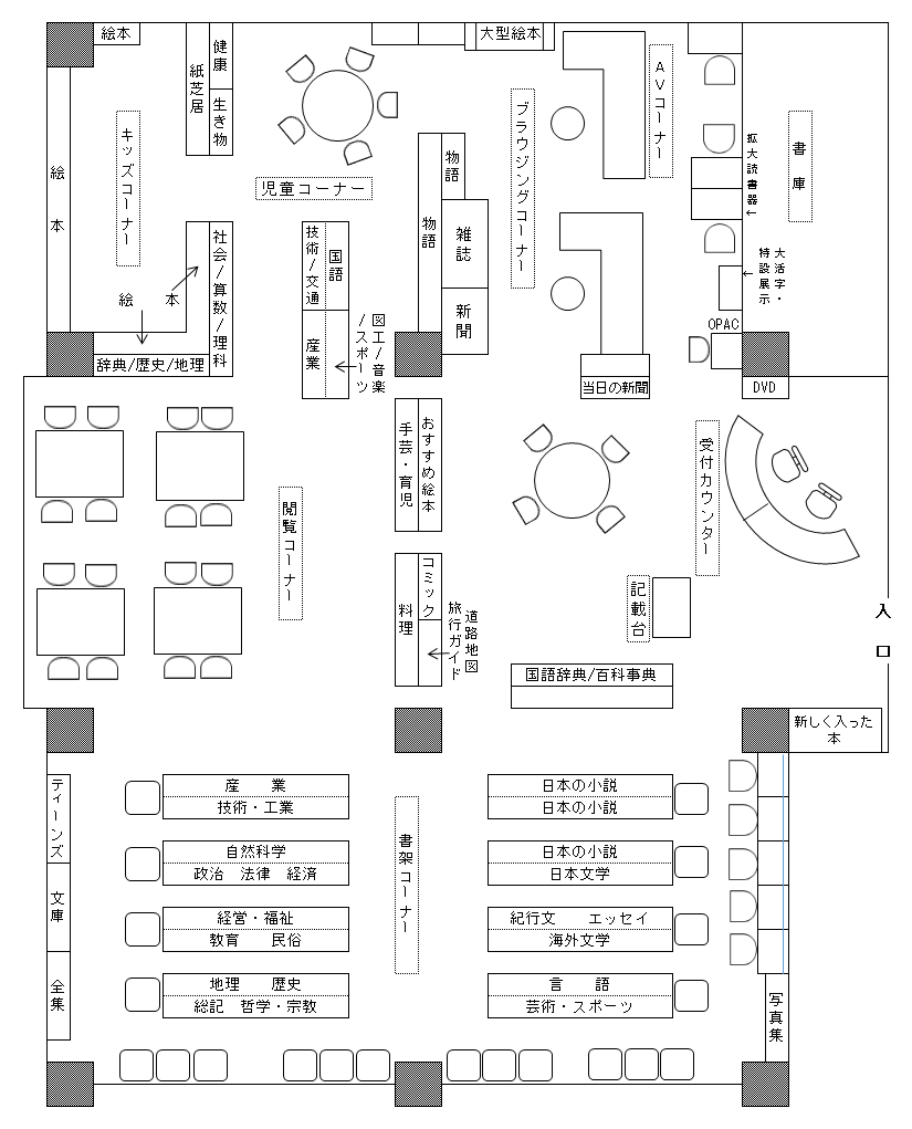 松江市立島根図書館 開架室配置図